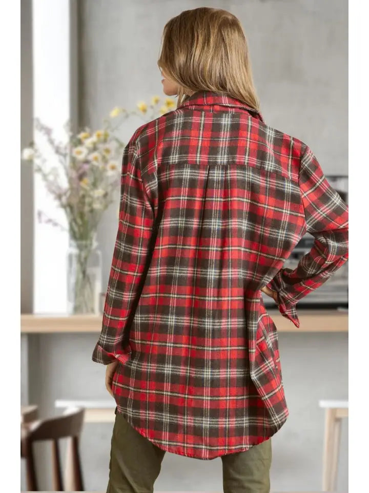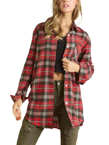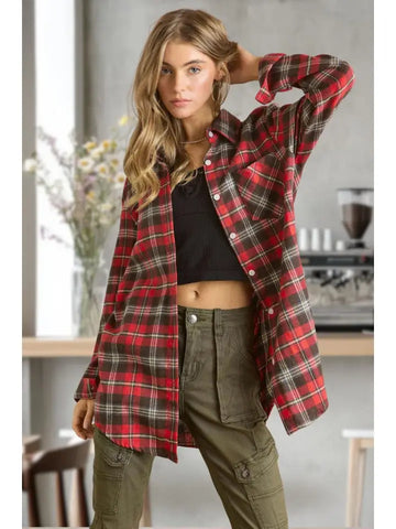 Classic button-down flannel design with long sleeves