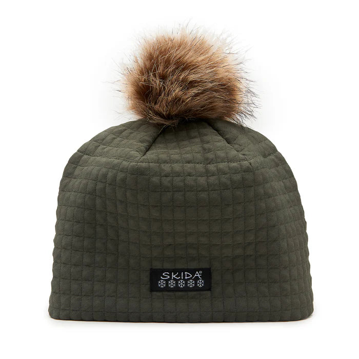 Skida Chateau Fleece-Lined Pom Hat blends elegant style with high-performance warmth. Crafted with Polartec® Power Air™ recycled knit and a soft fleece lining, this cozy hat is perfect for chilly days in mountain towns or city streets. Finished with a playful faux-fur pom, it delivers lightweight comfort, durability, and eco-friendly performance in one chic design. Made in the USA, the Chateau Pom keeps you warm without sacrificing style.